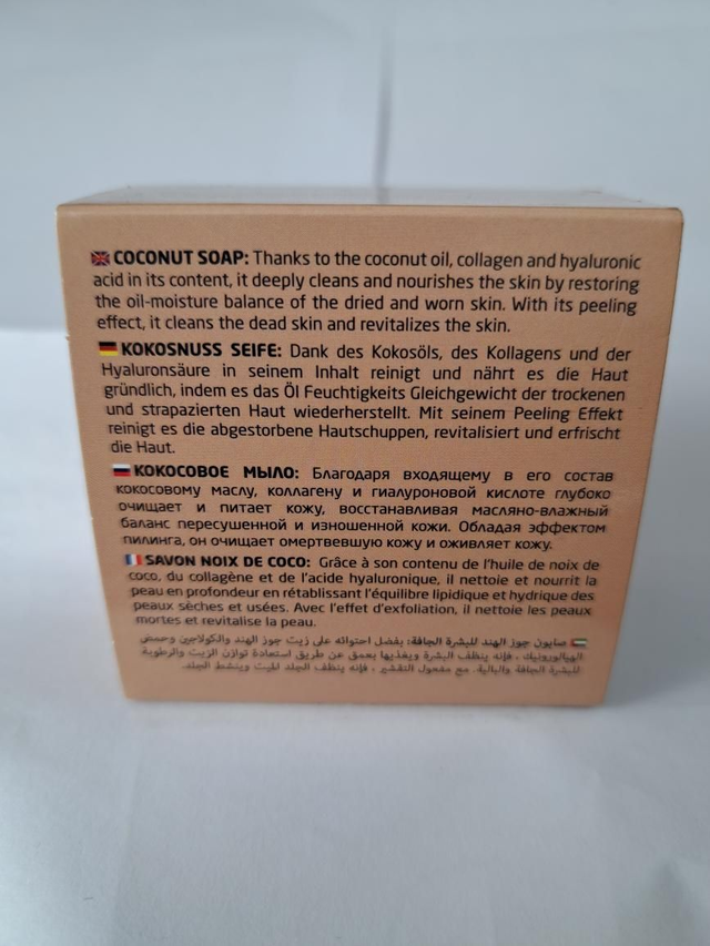Introducing our Coconut Soap infused with nourishing ingredients such as collagen, hyaluronic acid, and coconut oil perfect for deep cleansing, moisturizing and rejuvenating your skin. The unique blend of vitamin-rich coconut oil and gentle lather works hard to balance your skin's oil-moisture levels and remove dead skin, leaving you with a radiant glow. Our Coconut Soap is perfect for anyone looking for a luxurious skincare routine that's both soothing and effective. Give your skin the pampering it deserves with our Coconut Soap.