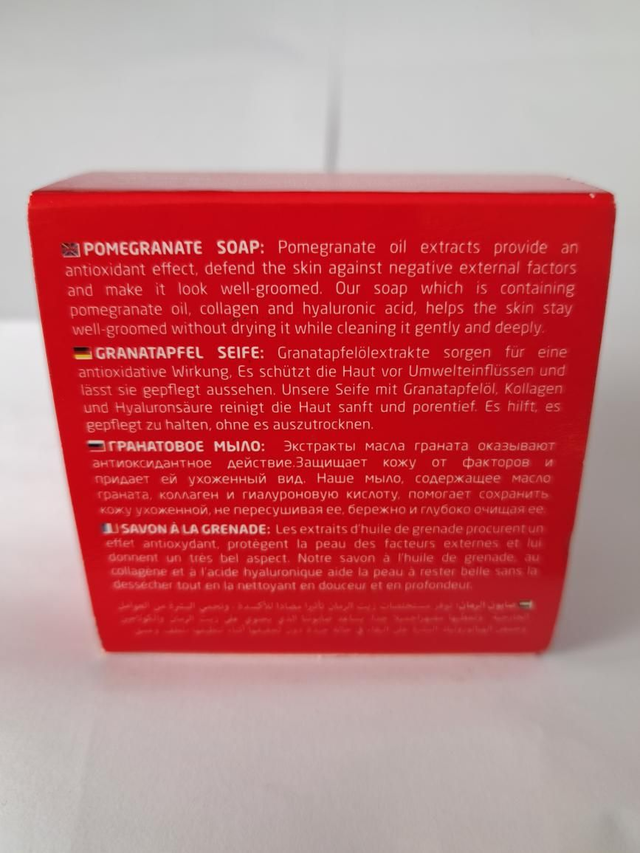 Introducing our Soap infused with Pomegranate Oil. Our luxurious lather deeply cleanses the skin, while the antioxidant-rich pomegranate oil nourishes and moisturises. The collagen and hyaluronic acid work together to gently but effectively combat signs of aging. Perfect for all skin types, this soap will leave your skin feeling soft, glowing, and healthy. Experience the benefits of deep cleansing and targeted skincare with our Pomegranate Oil Soap.