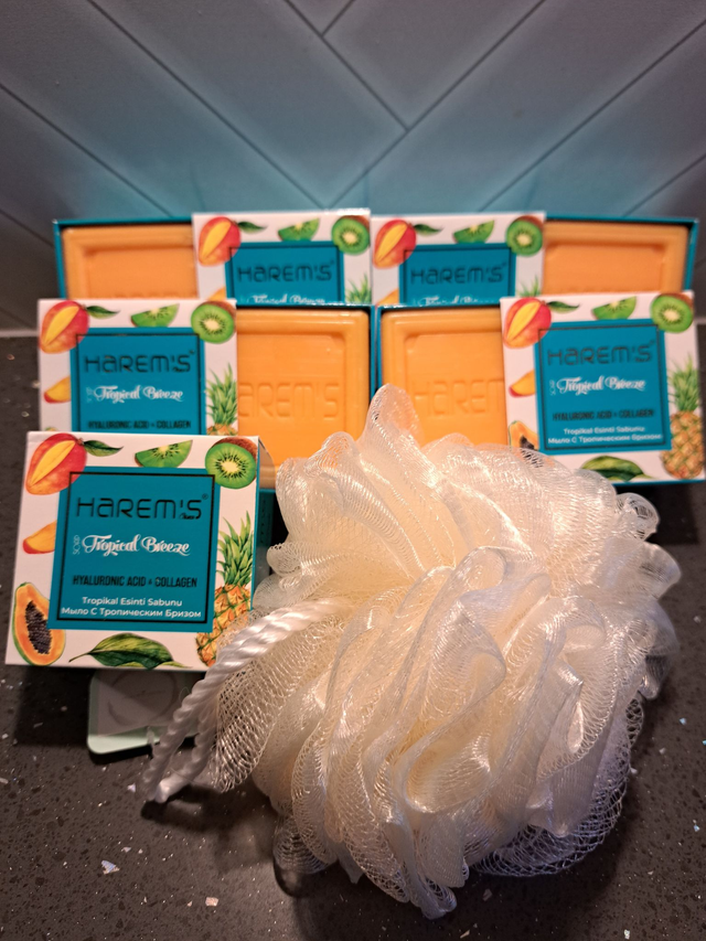 Five Soap Bars (5 X 120 grams = 600 grams) and a Scrunch (Colour may vary).
